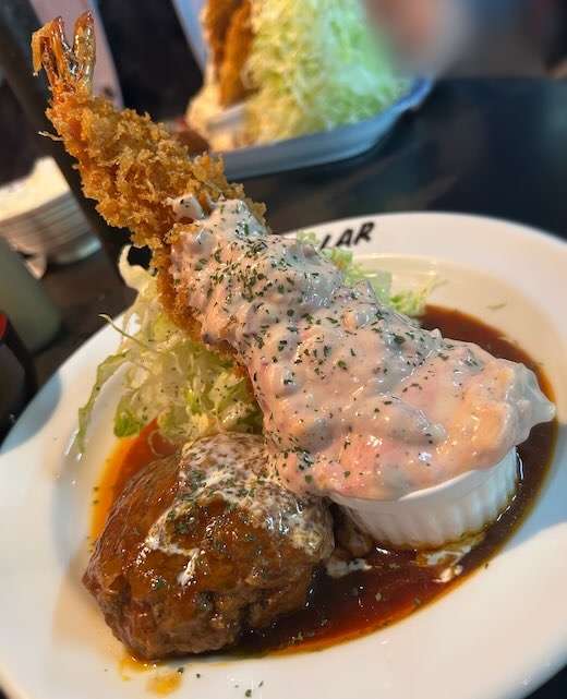 大きな海老フライが有名なお店で、見た瞬間に「すごい…!」と思うくらい、ボリューム満点でした☆